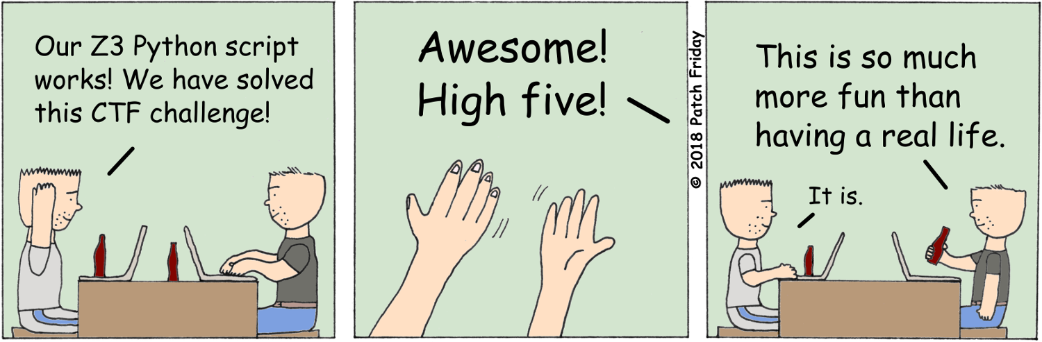 Getting stuck can be unpleasant. Nevertheless, always remember that as opposed to real-life problems, a CTF challenge always has at least one solution! So take a step back, try a different approach and don’t get discouraged.